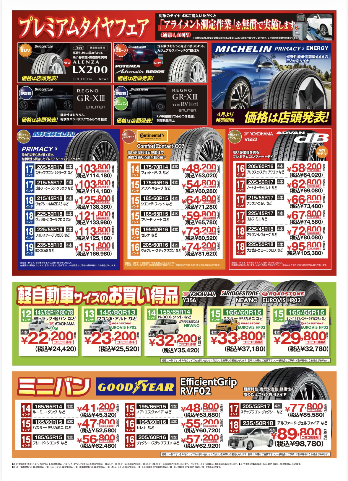 - Q.持ち込みタイヤの交換はして頂けますか?可能な場合、費用を教えて下さい。