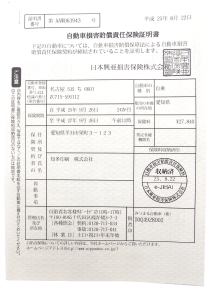 代車貸出時に、事故に合われた際、お客様の保険を優先的に使わせていただく場合がございます。保険加入の有無の確認のため、お持ち下さい。