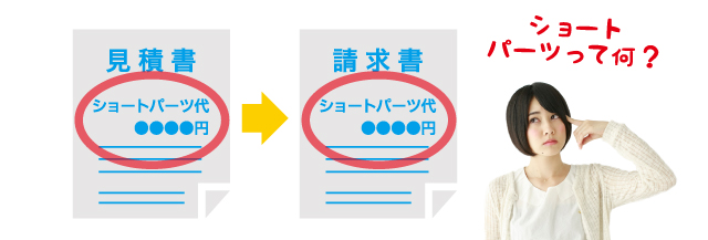 ショートパーツとはグリスや洗浄剤等の消耗品の事を指します。実際は数10円〜数100円程度の分量を使用するだけにもかかわらず2,000円程度から、場合によっては5,000円も請求される場合があります。